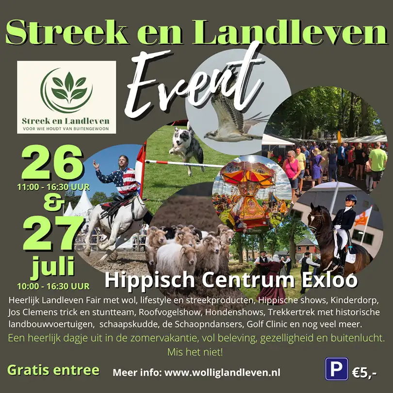 Exloo – Hippisch Centrum Exloo vormt op zaterdag 26 en zondag 27 juli 2025 het decor voor het gloednieuwe evenement Streek en Landleven Fair. Meer dan 10.000 m² terrein wordt omgetoverd tot een bruisend belevenisterrein voor het hele gezin. Buitenlucht, vermaak en...