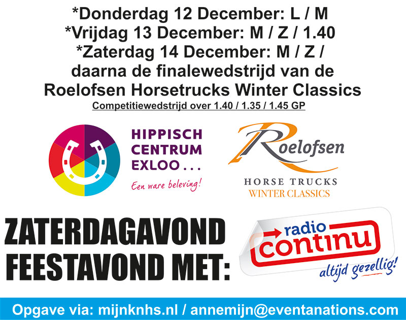 Exloo Wintershow 2020 ‹ Vorige Jumping Indoor Exloo 2020 Volgende › Dressuurwedstrijd 23 februari 2020 Gerelateerde berichten Nieuwe Zomertour voor ruiters: Paardenvoer.nl lanceert eigen wedstrijdconcept in Exloo Subtop 2 daagse 8 & 9 december Showavond 20 december op HCE!!