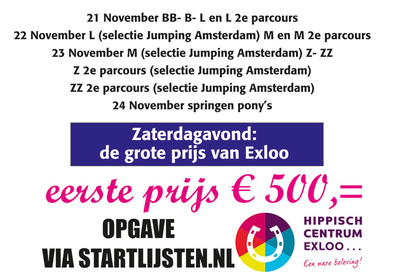 Jumping Indoor Exloo 2020 ‹ Vorige Subtop Exloo 10 november 2020 Volgende › Exloo Wintershow 2020 Gerelateerde berichten Voorbereidingen EK/WK mennen Exloo 2023 in volle gang Hippisch Centrum Exloo introduceert leenfietsen bij laadpalen Toch WK-ervaring voor Joris Wouda