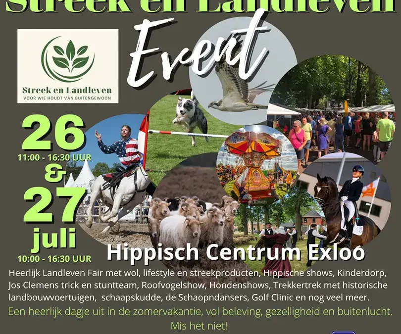 Exloo – Hippisch Centrum Exloo vormt op zaterdag 26 en zondag 27 juli 2025 het decor voor het gloednieuwe evenement Streek en Landleven Fair. Meer dan 10.000 m² terrein wordt omgetoverd tot een bruisend belevenisterrein voor het hele gezin. Buitenlucht, vermaak en gezelligheid staan centraal tijdens dit zomerse weekend vol verrassingen voor jong en oud.