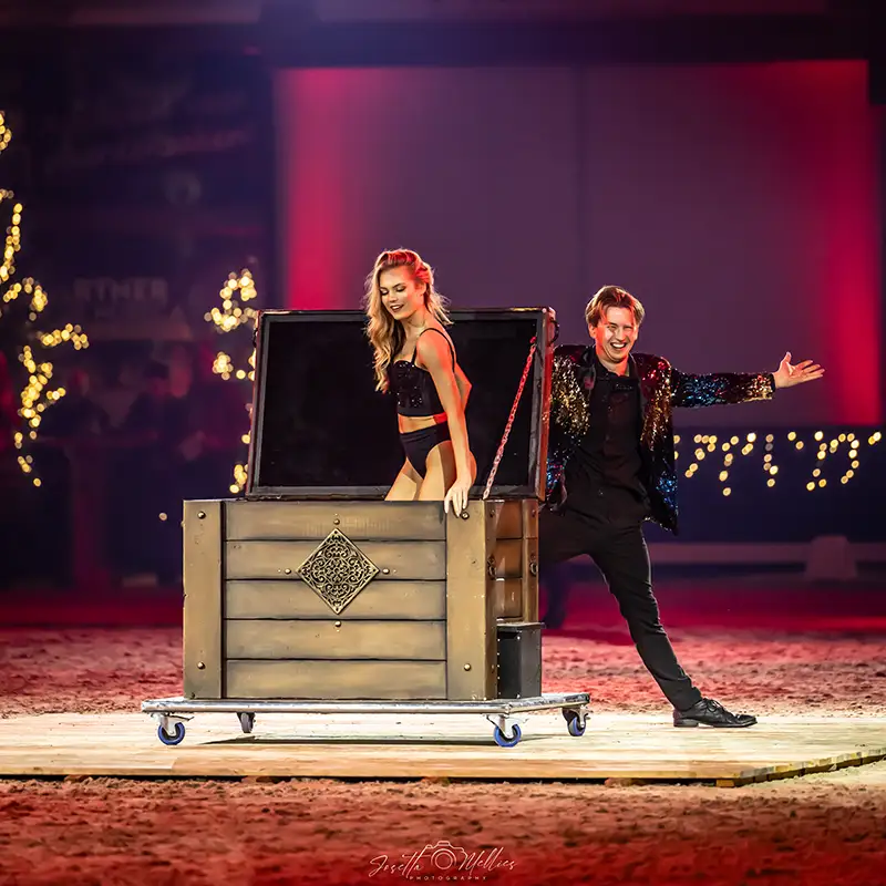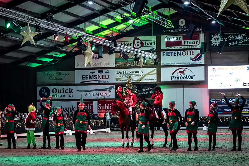 Exloo – Ruim 2.000 bezoekers hebben afgelopen week genoten van de kerstshows op Hippisch Centrum Exloo. Het 2,5 uur durende programma, speciaal georganiseerd voor senioren, mensen met een beperking en hun begeleiders uit Drenthe, bood een sfeervol en afwisselend spektakel met rijkunst, live muziek, diverse dieren, mooie acts en illusionisme.