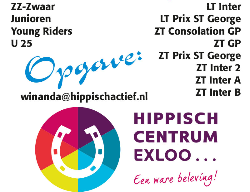 Subtop 2 daagse ‹ Vorige Bedankt voor een fantastische week vol prachtige prestaties Volgende › Let op! Aangepaste sluitingstijden! Gerelateerde berichten Vierspantop kijkt nu al uit naar het Europees kampioenschap Persbericht: 30ste keer Noordelijke Tuigpaarden Dag Topsport Exloo op 26 en 27 juni 2021