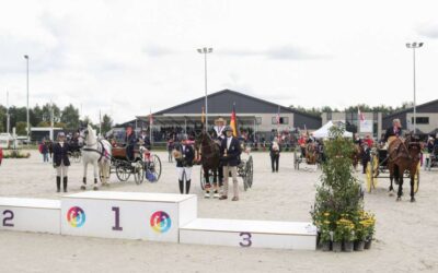 Bij de Paramenners kwamen alle paarden en pony’s direct glansrijk door de keuring. Bij de vierspannen waren er enkelen die een tweede keer moesten opdraven en er belandden een aantal in de holding box. Uiteindelijk worden er morgen nog twee paarden voor een her-inspectie aangeboden. Dat zijn Ringo van de Hongaar Laslo Juhasz en Jasmin van de Tjech Jiri Nesvacil sr.