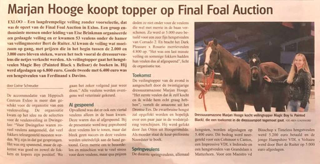 14 oktober hebben wij onze eerste veulenveiling in het Hippisch Centrum te Exloo. De veulenveiling is pas een feit geworden, halverwege september maar we kunnen nu al spreken van een succes!